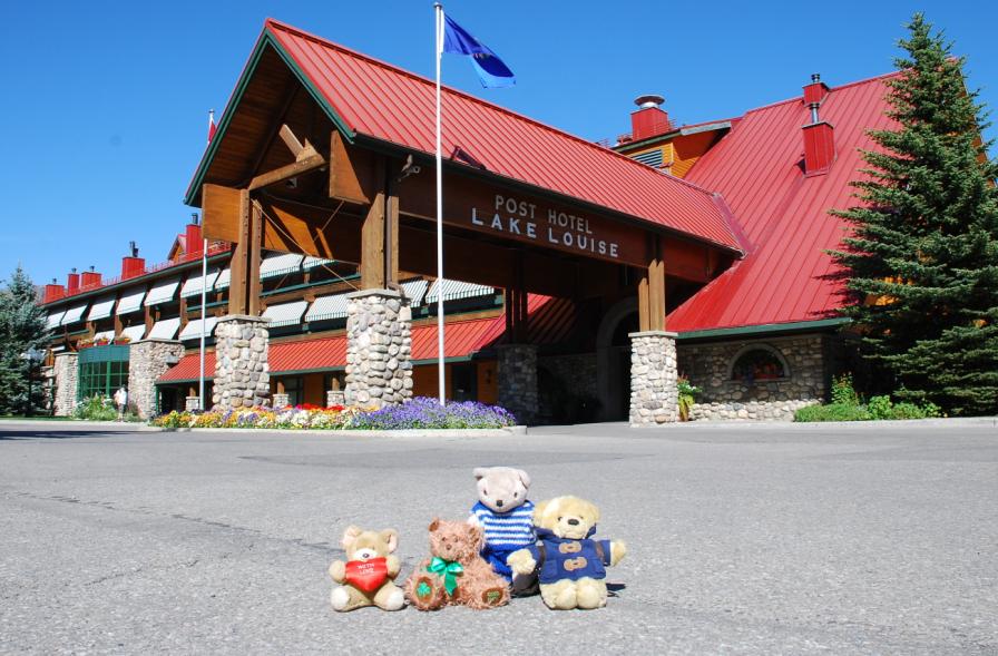 We went to the Moraine Lake near Lake Louise. As the water is melted glacier water, it is freezing cold, but that didn't prevent people from swimming in it! Brrr!!! Being a polar bear, Roger of course wouldn't have minded a swim himself...