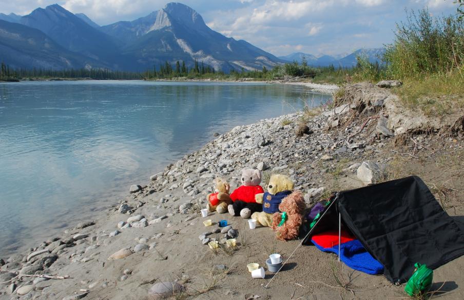 We set up our basecamp at the bank of the Athabasca River. Since Tom has a