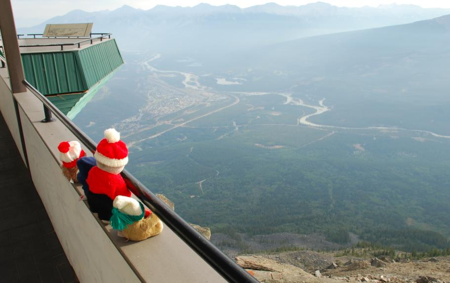 We walked over to the cafe to get some well deserved coffee. The view was fantastic and deep down the valley we could see Jasper town and the Athabasca River. Then we took the gondola down...