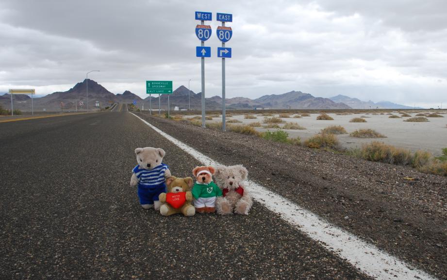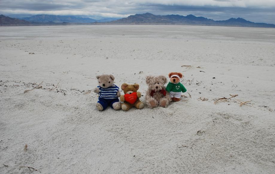 Then we went to explore the Great Salt Lake Desert. It's a vast area, mostly the flat seabed of a large inland sea that has now dried out. Here we are on the salt flat. The mountains in the background are miles and miles away.