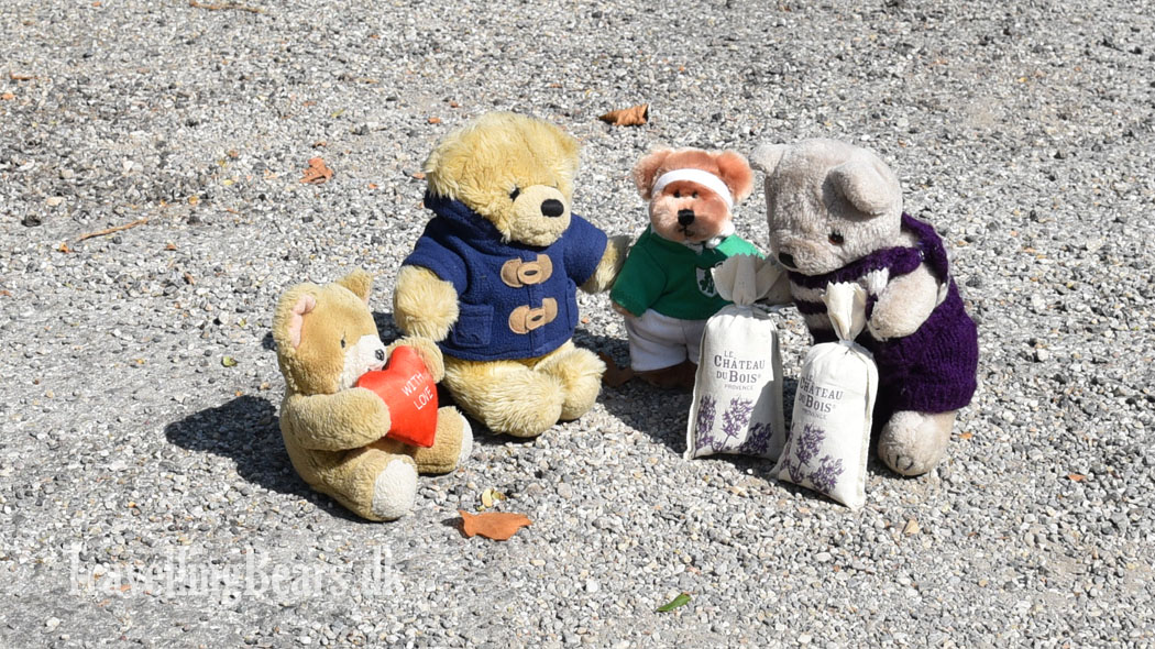 At the distillery one of our humans decided to get a real lavender bear. We named him Lavende - it's French for... lavender!