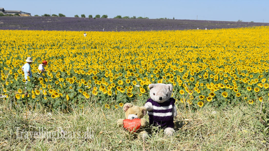 On our way east we suddenly reached an area full of lavender fields including a sunflower field! Wow. It was fantastic and the place was already invaded by tourists. There was a local lavender distillery and there was a carpark with several huge coaches and many cars.
